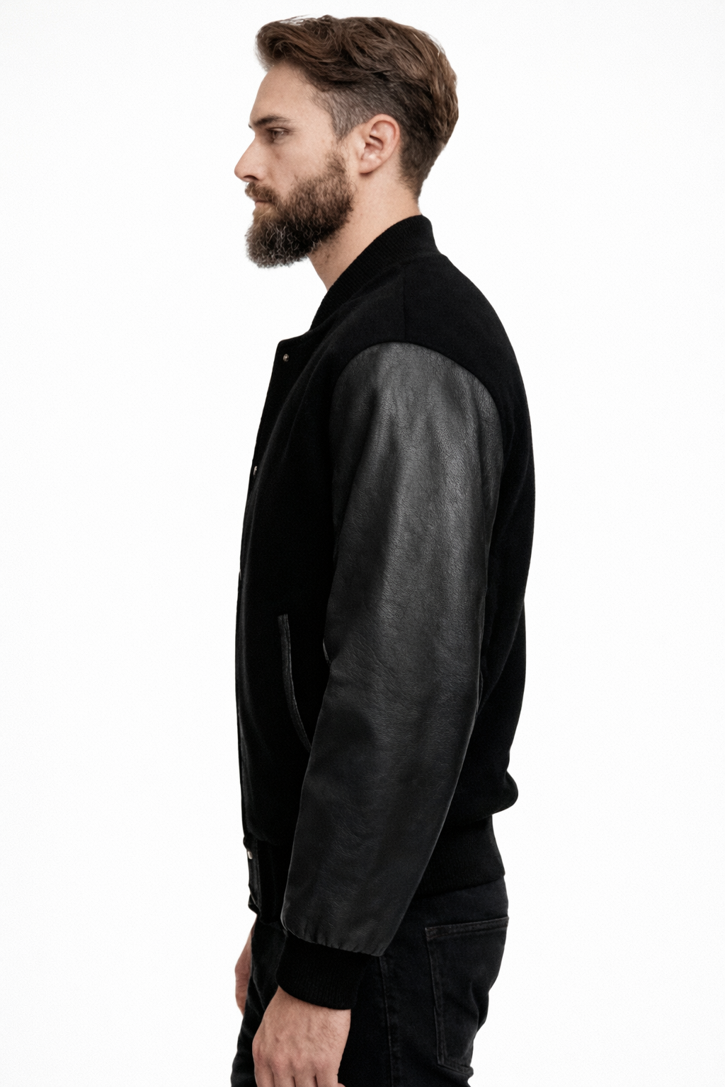 Step into effortless style with this Black Varsity Jacket, a true wardrobe essential that never goes out of fashion. Sleek, minimal, and undeniably bold this jacket blends the classic varsity design with a modern all black finish for a look that’s both sophisticated and street ready.