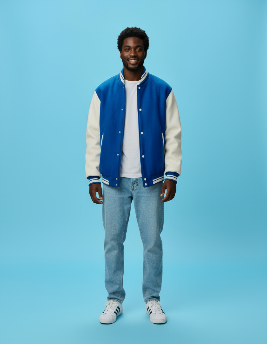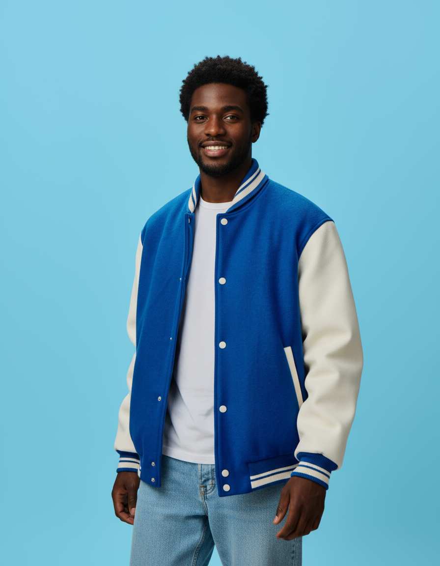 Step into timeless style with our Custom Blue Varsity Jacket expertly crafted by Crispus Industries. Designed for schools, teams, brands, and individuals who value quality and personalization. Choose your own colors, patches, embroidery, and more shipped worldwide from Pakistan.