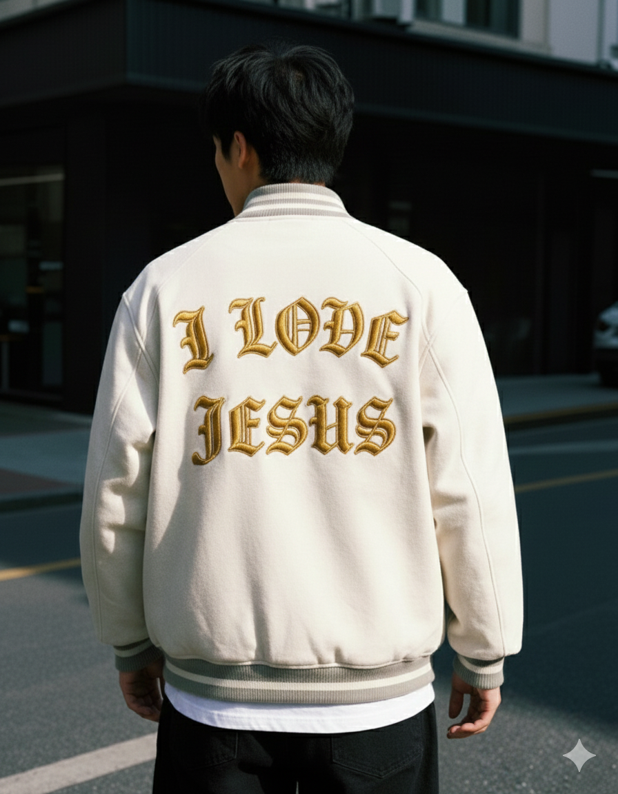 Wear your faith proudly with our I Love Jesus Varsity Jacket, designed for believers who want meaningful fashion without compromising style. This jacket combines timeless varsity design with bold Christian embroidery, making it a standout piece for any wardrobe.