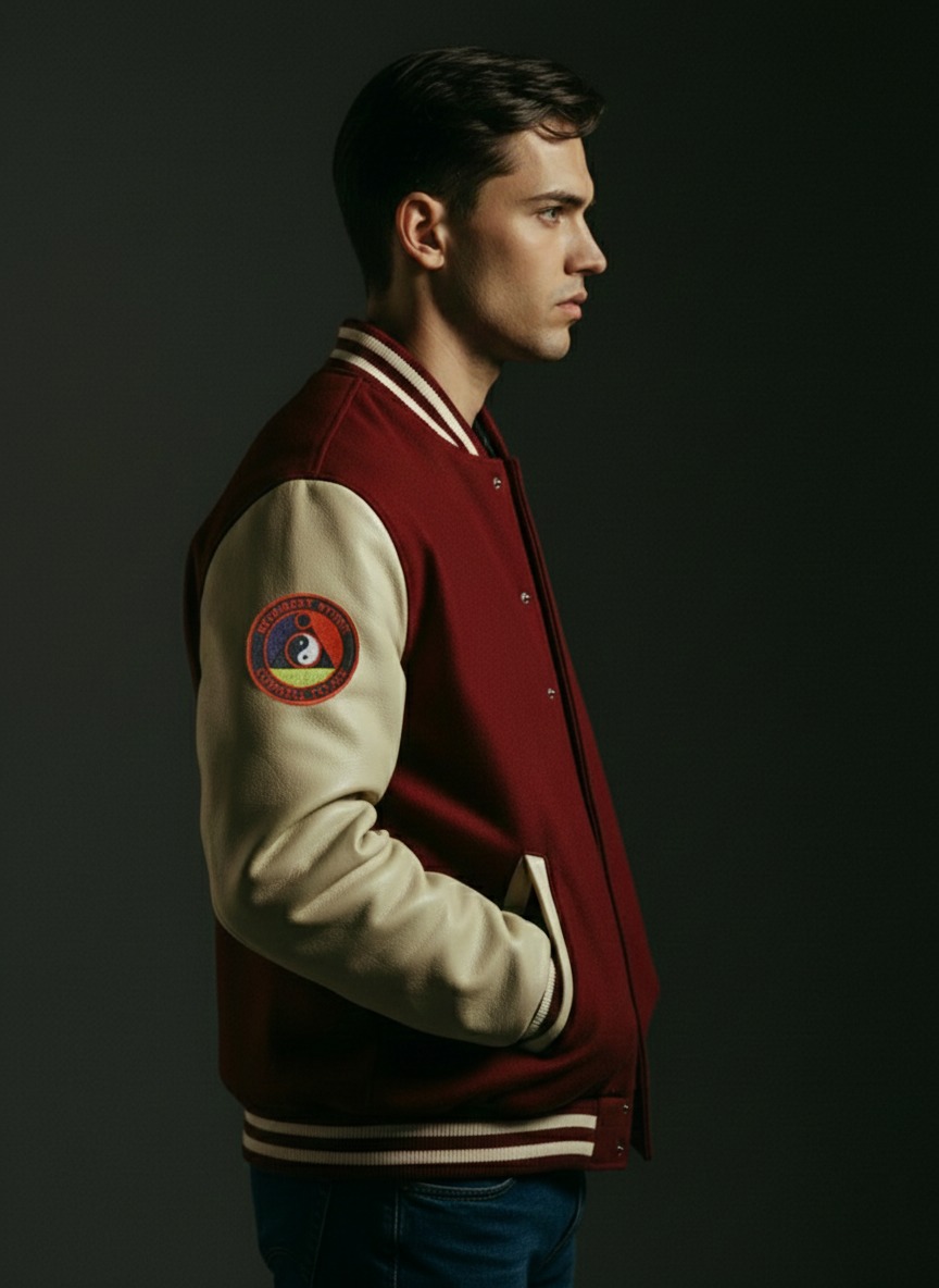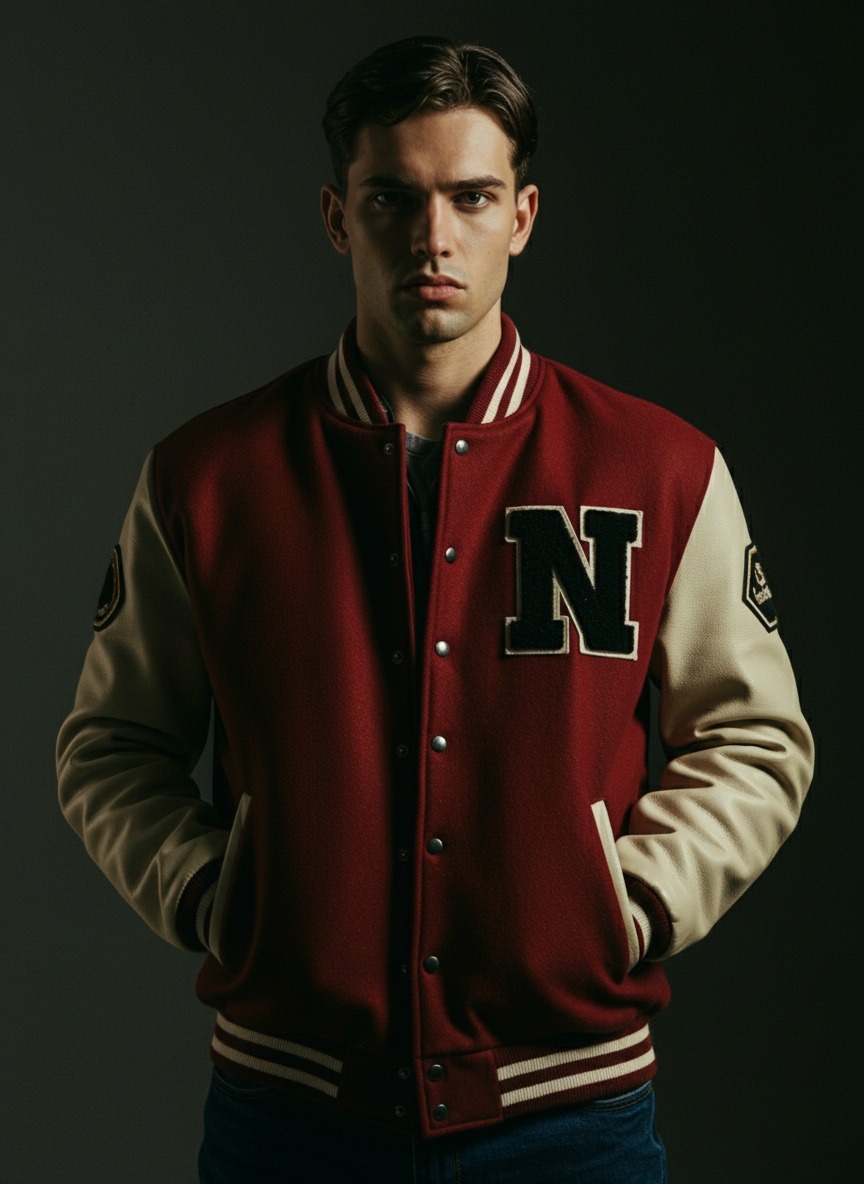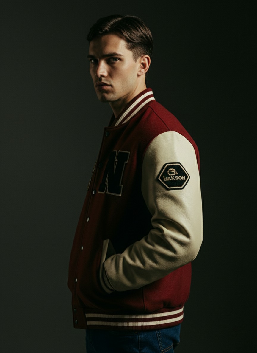 Step up your style game with the ultimate blend of classic and modern fashion! Our Urban Varsity Jackets are designed for those who appreciate the timeless appeal of varsity jackets with a contemporary twist. Crafted with a sleek maroon wool body and smooth ivory genuine leather sleeves, this jacket combines comfort, durability, and unmatched style.