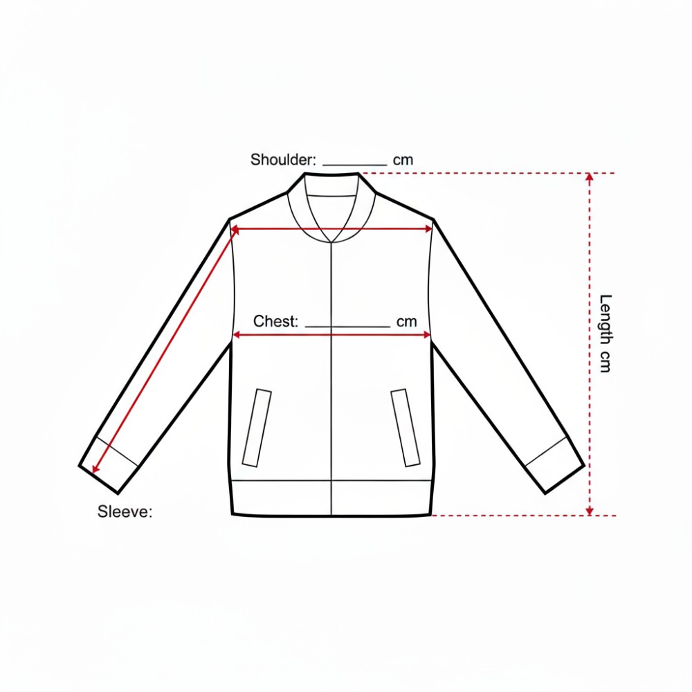 Body Length – From the top of your shoulder to where you want the jacket to end (waist, hips, or longer).